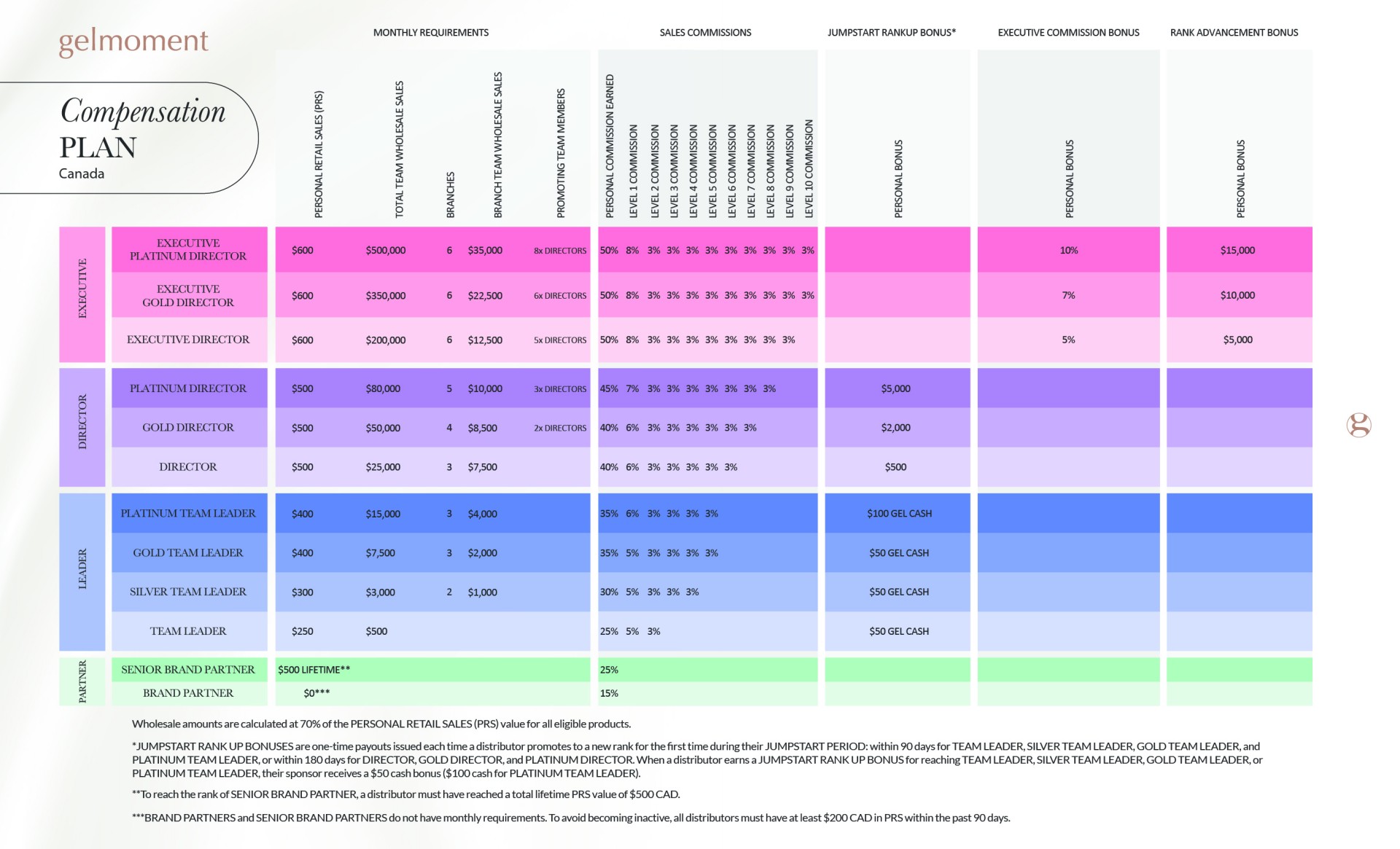 Training: Gelmoment Compensation Plan Rank explanation and glossary